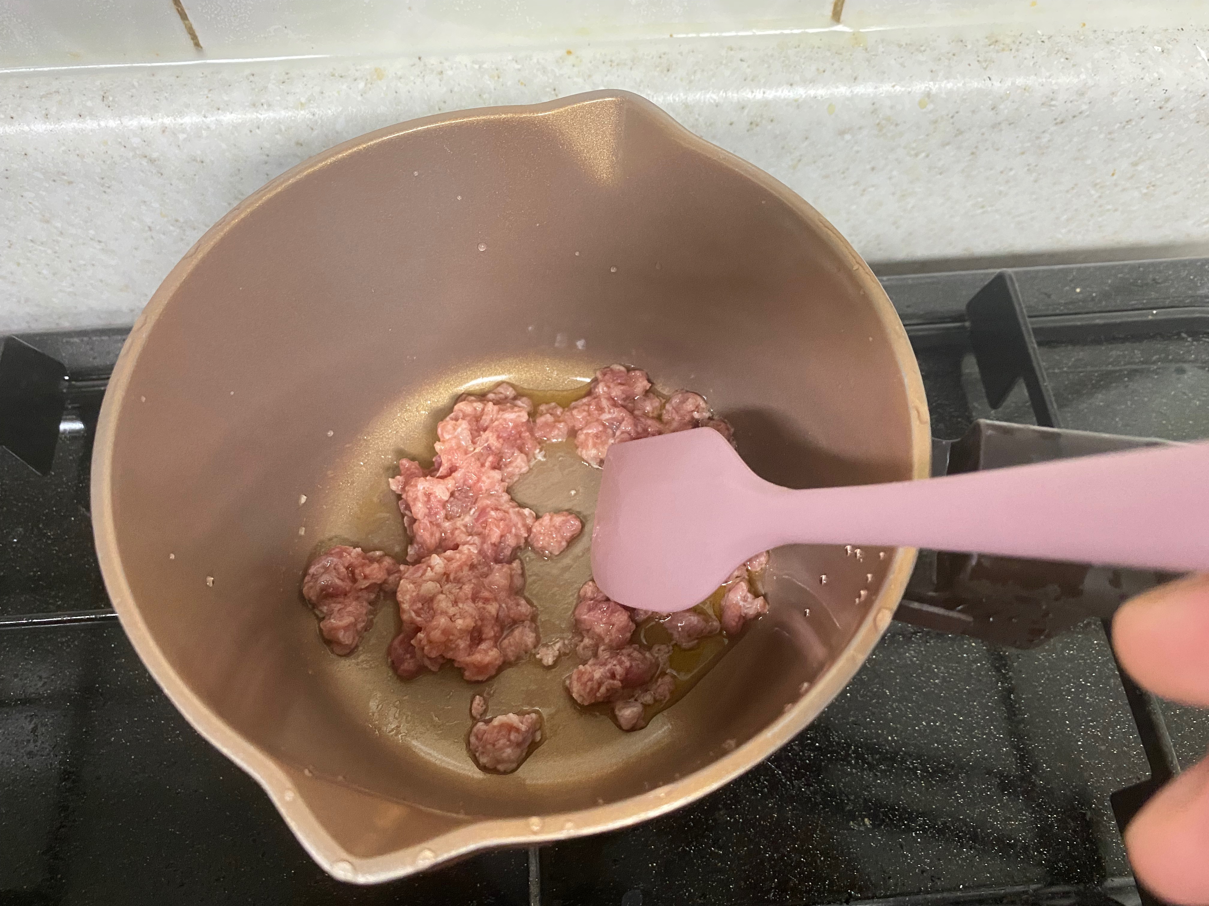 1. 먼저 소고기와 참기름을 넣고 볶아줍니다.