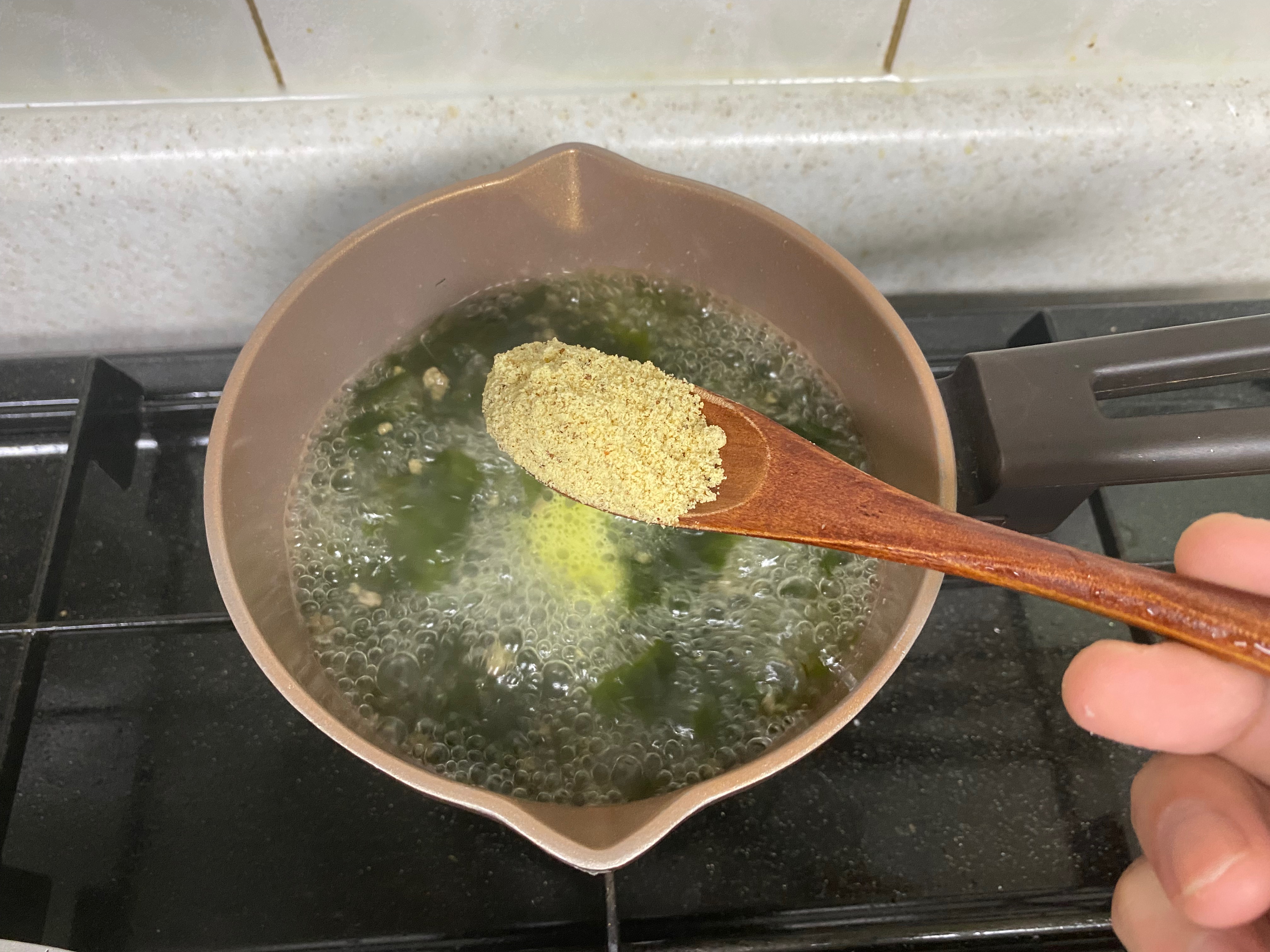 4. 끓어오르기 시작하면 들깨 한스푼을 넣어주세요.