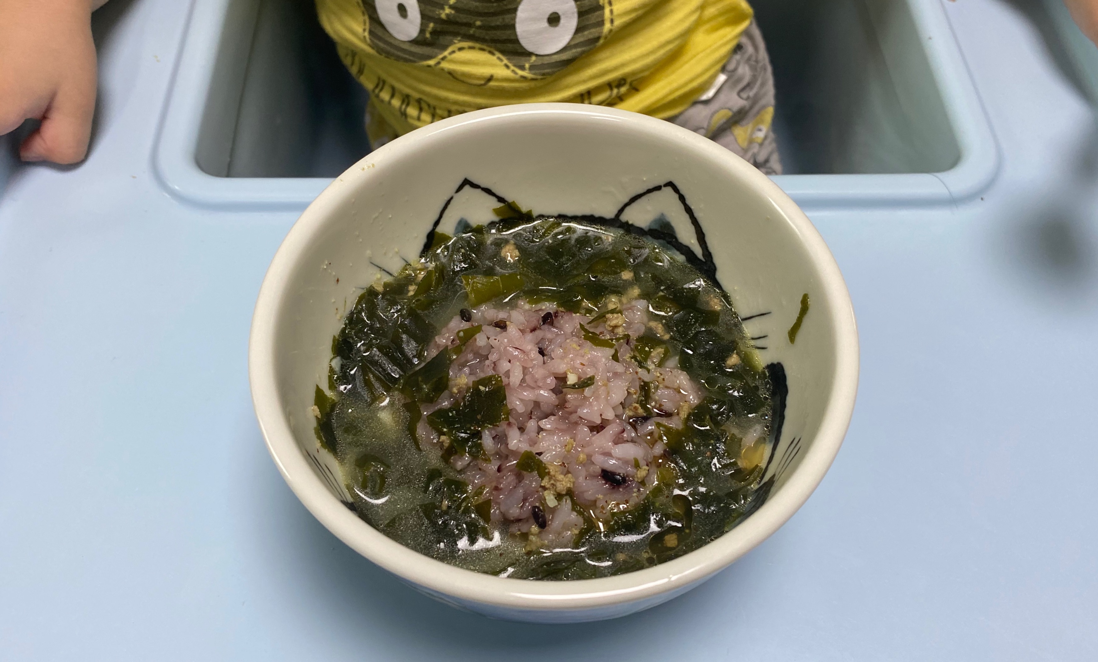 - 미역은 미리 불려주시고 칼이나 가위 등을 이용하여 잘 잘라주세요. 아이가 먹는 것이라서 잘게 잘라주었답니다.