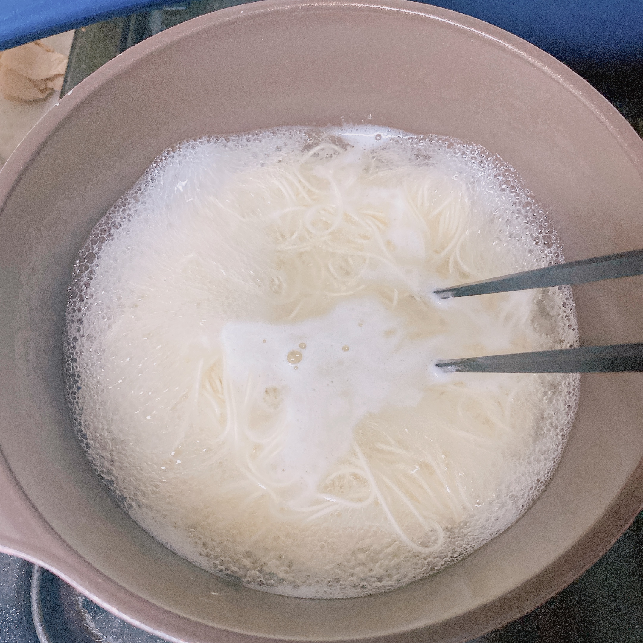 (소면의 경우는 끓는 물에 넣어주고 잘 주세요. 면들이 뭉칠 수 있어요. 그런다음 확 끓어오를때 찬물을 부어주고 다시 끓어오르면 찬물을 부어주는 과정을 4번 반복했어요. 원래 3번 정도만 하고 찬물에 헹거주시면 되는데 아기가 먹을꺼라 4번 정도 반복했네요)