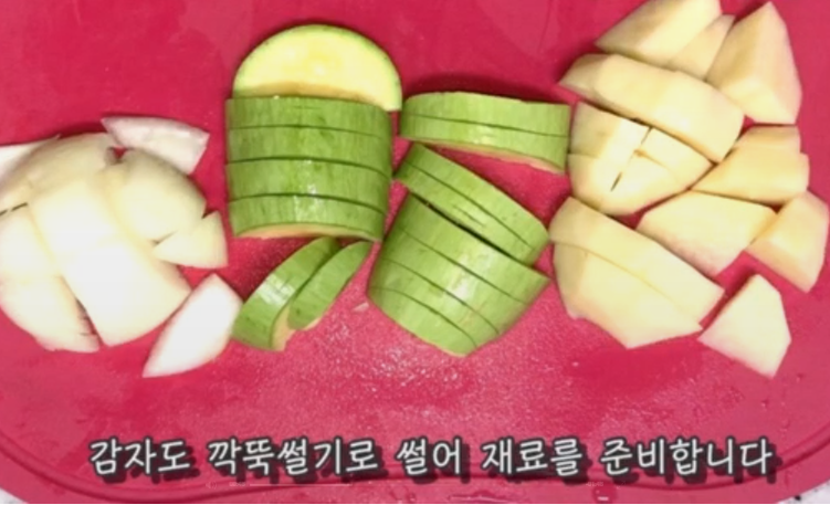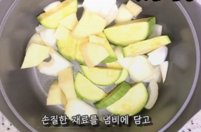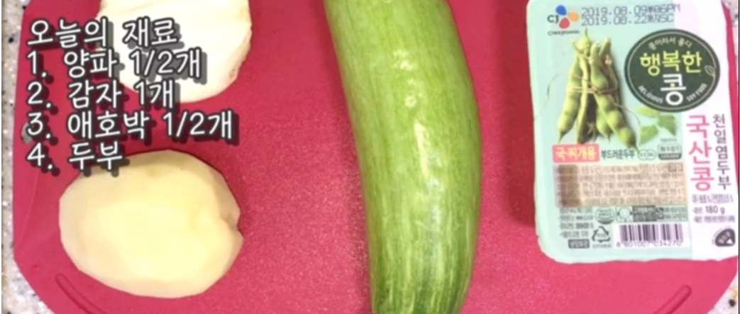 1. 양파, 애호박, 두부를 먹기 좋게 자릅니다