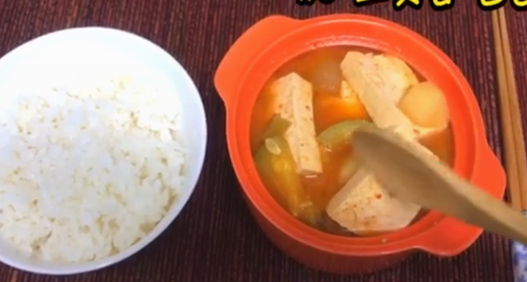 1. 양파, 애호박, 두부를 먹기 좋게 자릅니다