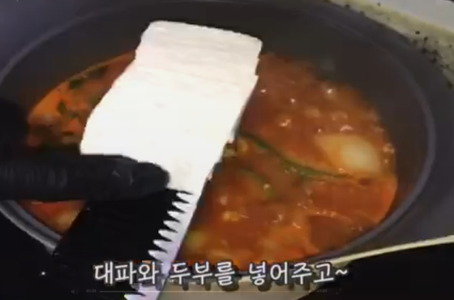 7. 대파와 두부를 넣어주시고 후추, 다시다도 조금 넣어줍니다.