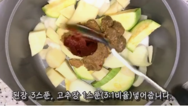 3. 된장 3스푼, 고추장 1스푼을 넣습니다