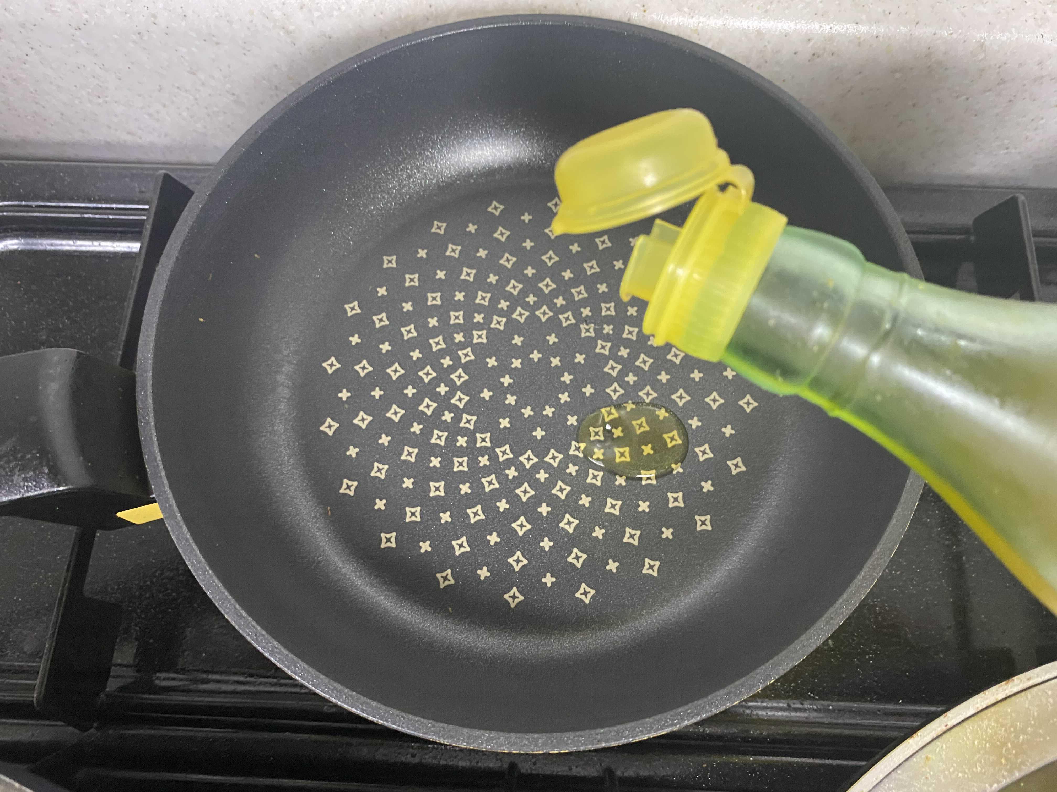 3. 먼저 프라이팬에 들기름을 살짝 둘러줍니다.